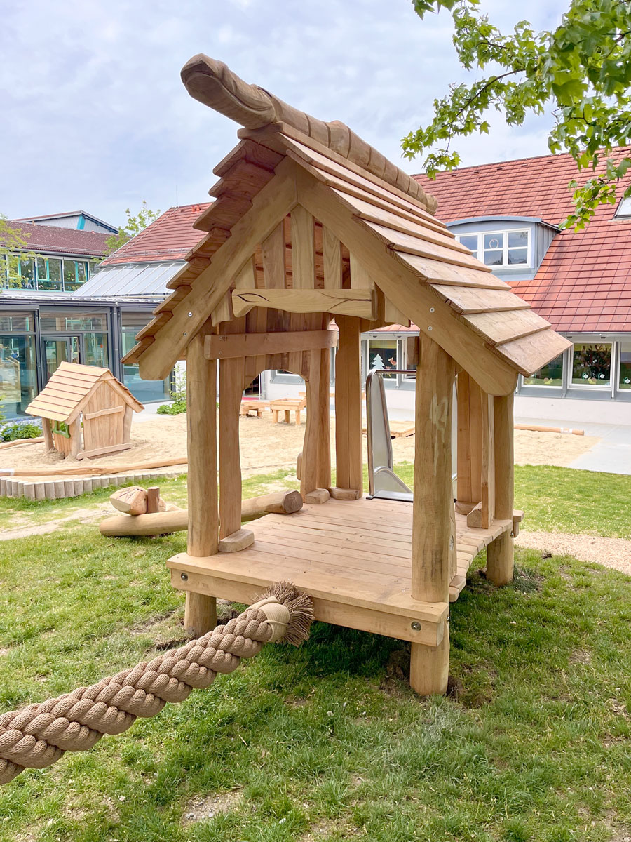 Im November 2024 lieferten wir für den U3-Spielbereich kleine Sitzgruppen, unsere Artustafel, das Spielhaus 'Schafstall', eine Wasser-Matschanlage, eine U3-Bauchschaukel und das Spielhaus Hexe. Die Spielgeräte wurden durch den Auftraggeber eingebaut und montiert.